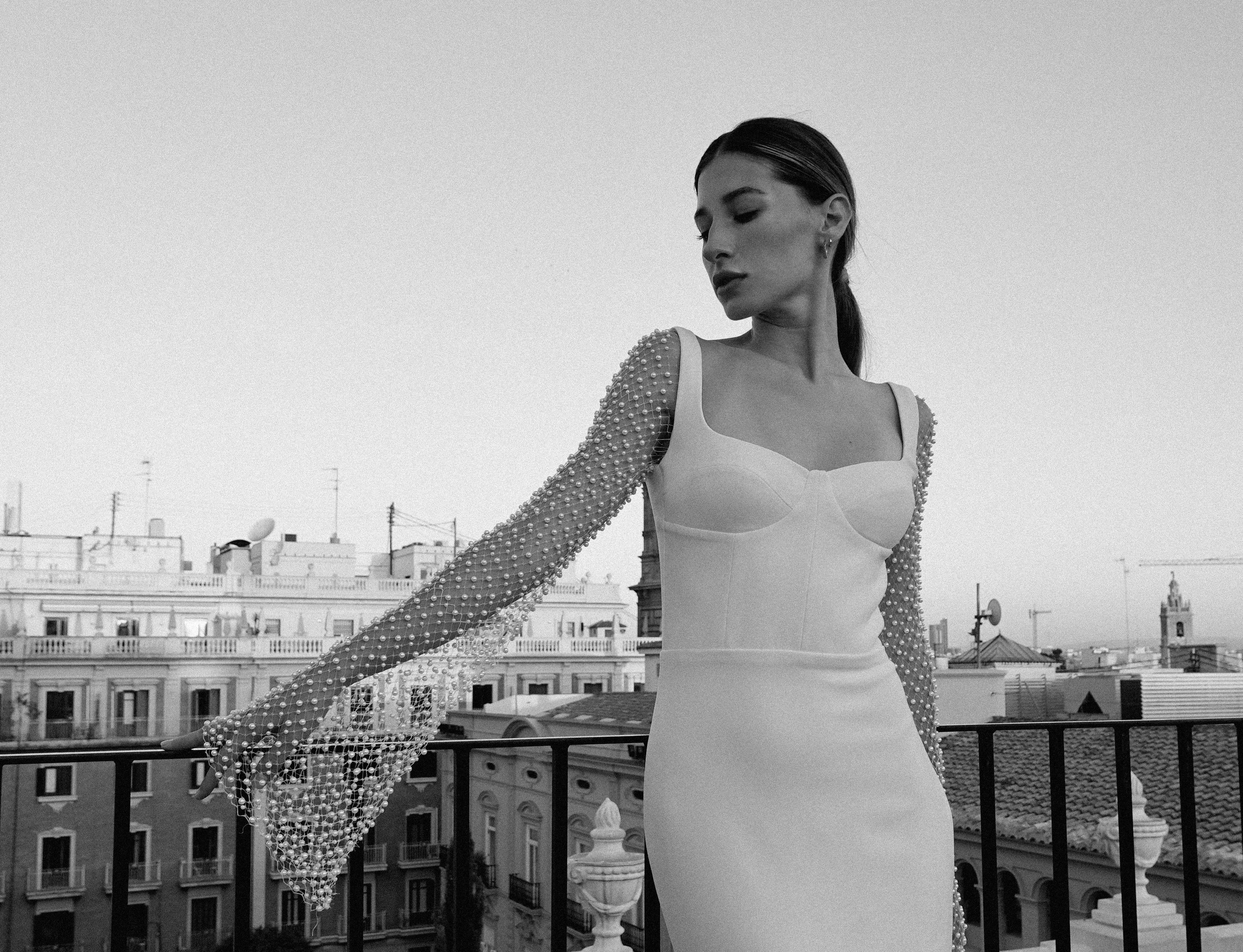 Inspired by the work of iconic female artists and architects, our 2024 collection takes shape in sleek lines and soft structure. Think corseted bodices, column silhouettes, and sensual square necklines. All these classic elements come together in an offering of dresses that are both modern and timeless: dresses that will stun on the day-of and in the pages of your wedding album for decades to come.